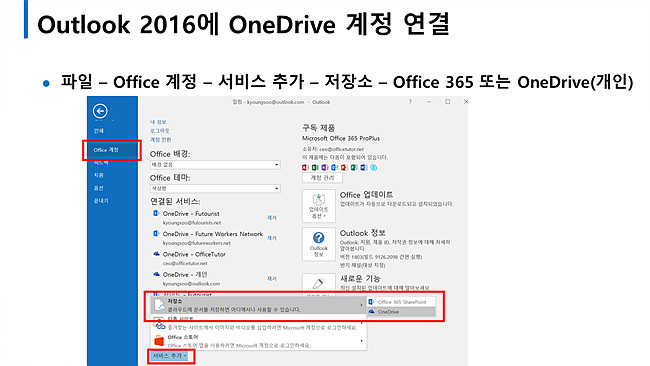 – Exchange 또는 Office 365 계정 연결